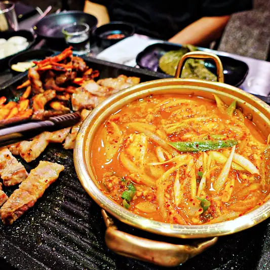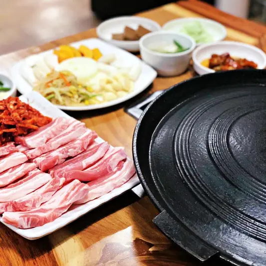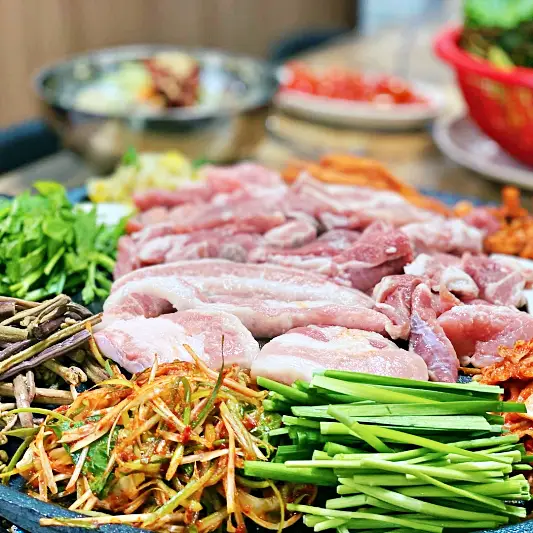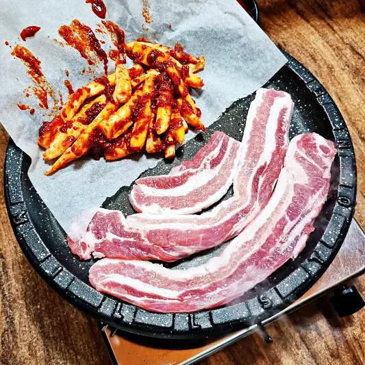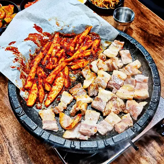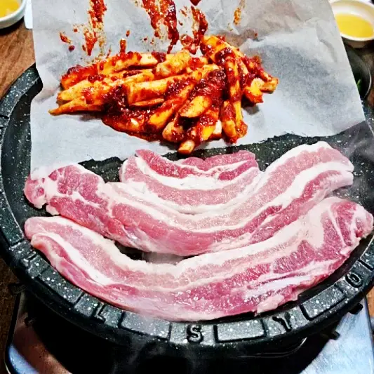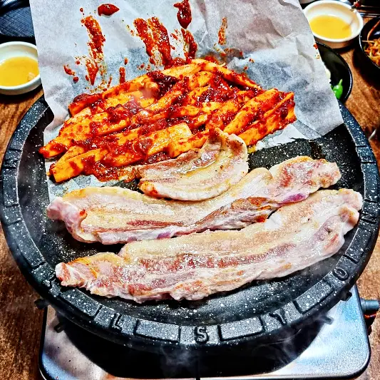 검색해보고 청주 가경터미널시장에서 멀지않아 방문했어요. 알고보니 놀토 놀라운토요일 청소광 브라이언 규현에서 297회에 방송도 했었더라고요! 음식이 굉장히 빨리나왔고 다른곳에 비해 가격이 조금 비싼 편이었지만 양이 많았습니다 특히 삼겹살 더덕생삼겹살은 보기에도 좋았고 맛있게먹었어요.